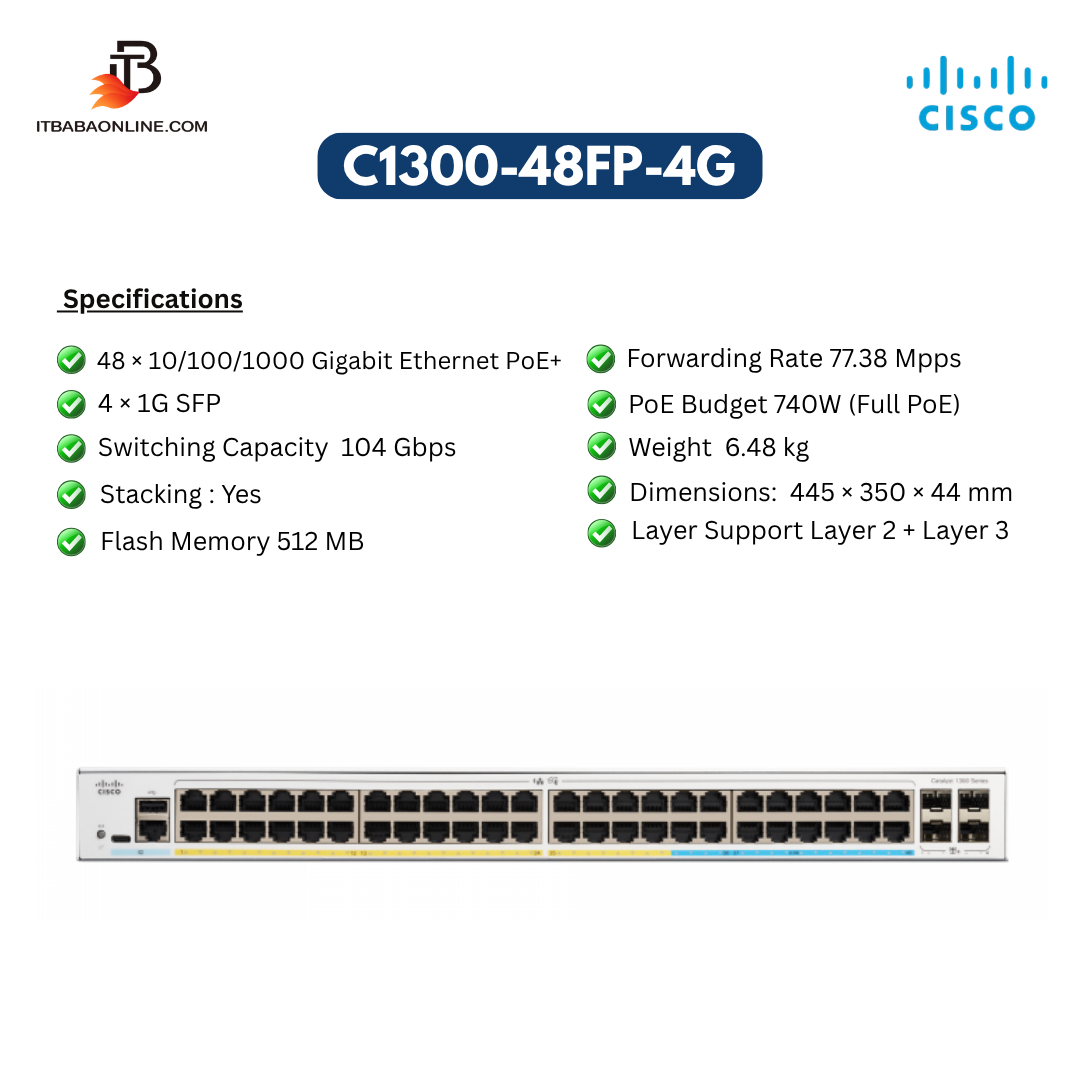 Get the best price on Cisco C1300-48FP-4G PoE+ switch in India with fast delivery and expert support.